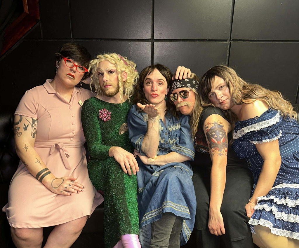 Tradwife Stringband is a new quintet offering a respite from our worrisome, troublesome, modernsome world with some good old fashion fiddle tunes, songs, and values. Come lay down your burdens and kick up your heels with the old time stylings of Doreen Ditties, Muffins Debrief, Mrs. Mandy Lynn, Madge, and Moose!